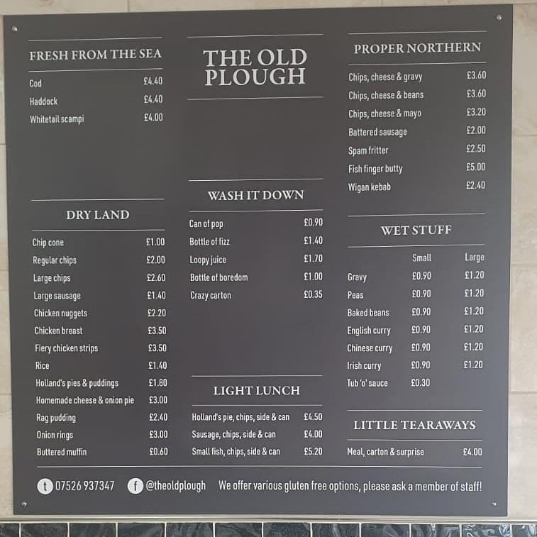 Located at 436 Huddersfield Rd, Oldham OL4 2EX, Old Plough Chippy is nestled in a vibrant community that's passionate about good food. This casual eatery welcomes everyone with its relaxed ambiance and wheelchair-accessible facilities, ensuring that everyone can enjoy a delicious meal. With free street parking available, it's easy to swing by without the hassle of searching for a spot.